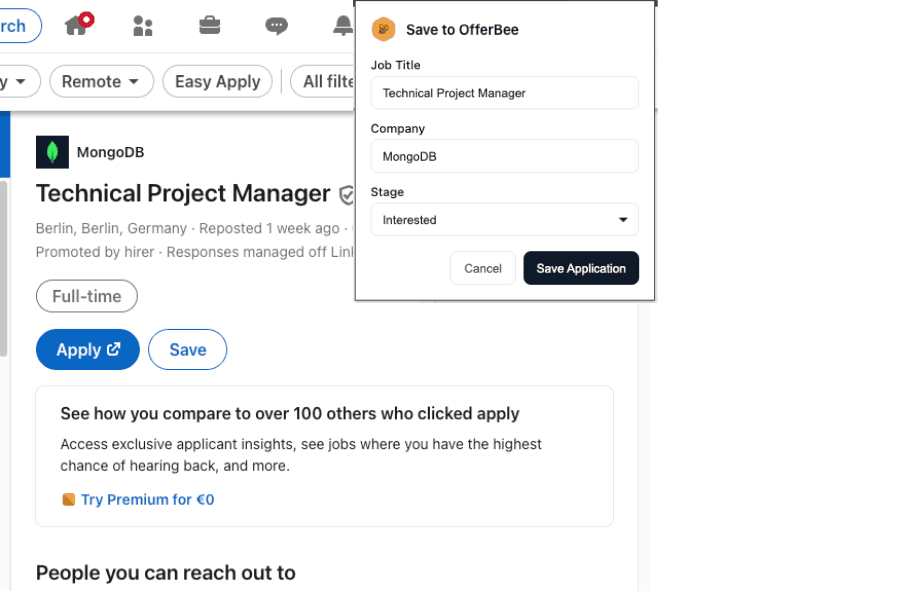 If you're about to start your job search in tech, OfferBee is the tool for you. Organize all your applications by interview status and never lose key information like application date, whether you got a referral, who referred you, salary range, details of the job description in case you get invited to an interview and the job ad gets taken down.